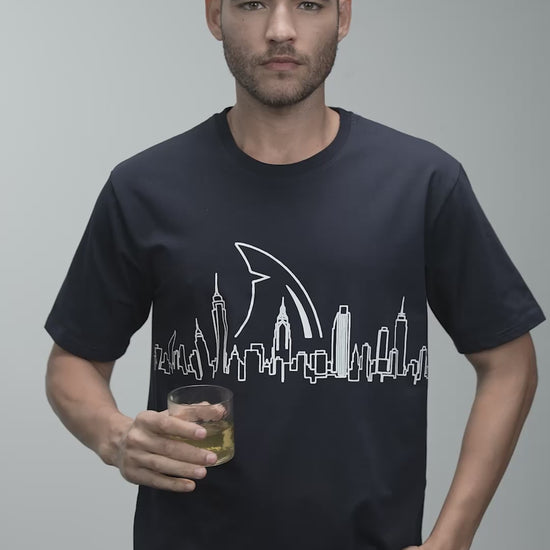 Urbshark Skyline Navy Oversized T-Shirt β Cotton-Spandex Blend, Planet Friendly, Stain & Odor Resistant